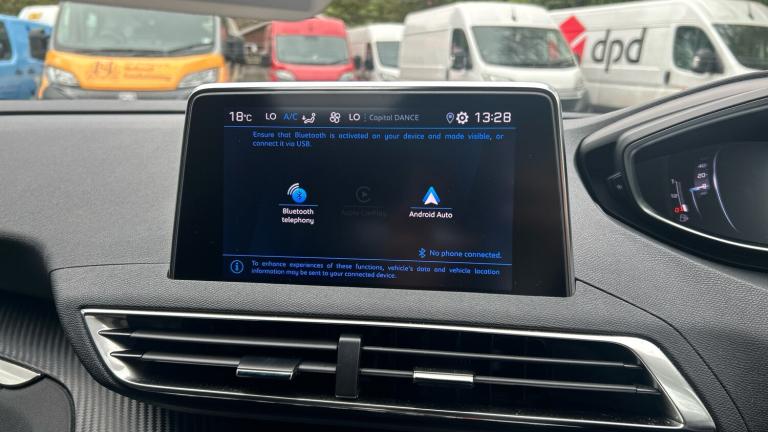 12V Sockets x3 - Front-Rear-Load Area6-Speaker Radio - MP3 CompatibleBluetooth Telephone FacilityDAB - Digital Audio BroadcastingMirror Screen - Apple CarPlay and Android AutoPeugeot Connect SOS and AssistancePeugeot i-Cockpit - 8in Capacitive TouchscreenUSB Socket180 Degree Colour Reversing Camera with Wash SystemBlue Ambient Lighting to Head-Up Instrument PanelDriving Time Warning - DAA1Extended Traffic Sign RecognitionExterior Temperature Indicator with Ice WarningLane Departure Warning SystemMode SelectorMultifunction Trip ComputerProgrammable Cruise Control and Speed Limiter with Intelligent Speed AdaptionRear Parking Sensors18in Alloy Wheels - Detroit - Storm Grey - Diamond CutAluminium Longitudinal Roof BarsBody Protectors - Wheel Arches and Protection at Bottom of Doors - BlackChrome Rear Bumper FaciaDark Tinted Rear Side and Tailgate WindowsDoor Mirror Covers - Black DiamondDoor Mirrors - Electric Folding and HeatedExterior Door Handles - Body-ColourFront Bumper - Lower Trim in SilverFront Radiator Grille - Classic - Frameless DesignFront Wing Trim - BlackGloss Black B and C Pillar and Aerodynamic Deflector TrimGloss Black Rear Cluster Connecting StripHeated Rear Windscreen with Integrated AntennaLED Front IndicatorsLED Side Indicator Lights Integrated into Door MirrorsOne-Touch Electric Front and Rear Windows with Pinch ProtectionRear Spoiler - Body Colour with Stainless Steel Edging TrimRoof - Body ColourSide Window Trim - Black RubberStainless Steel Door Sill Scuff PlatesStainless Steel Roof Arch TrimTyre Repair and Inflation KitVisibility PackWindscreen Trim - Gloss BlackEco LED HeadlightsHeadlights Left On Audible WarningLED Daytime Running Lights - Fang StyleRear LED Peugeot Signature Claw Effect Lights - With Daylight FunctionAir Conditioning - Automatic Dual Zone Climate ControlBlue Ambient Lighting for Connecting ZoneCentral Front Armrest with Butterfly-Wing Opening and Illuminated CompartmentDashboard Trim - Satin ChromeDigital Instrument Panel Trim - Satin ChromeFlocked Glove Box InteriorFront Central Console with Two Cup-HoldersFront Interior Light with Reading Spotlights x2 and Rear Interior Light with Reading Spotlights x2 - with TimerFront Optimised Safety Headrests and Rear Retractable Headrests - x3 - Height-AdjustableFront Windscreen Wiper with Magic Wash Cleaning SystemGrab Handles x4 - Retractable - DampedIlluminated Glove Box - Central Storage Area and Load