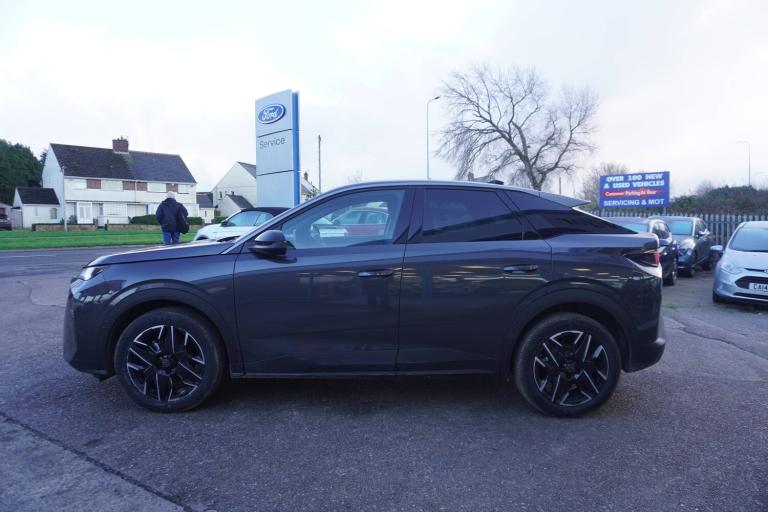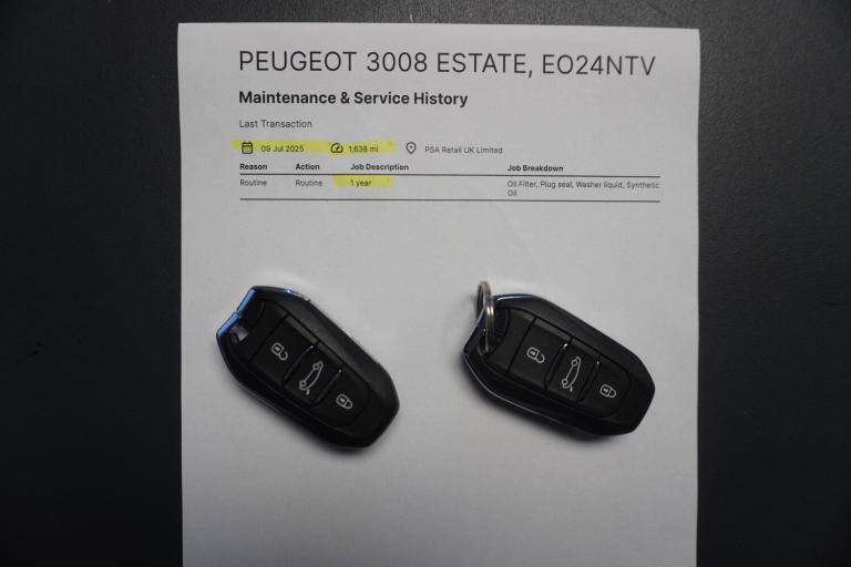 2x Isofix child seat fitting on outer rear seats with zipped cover, 3x3 point rear seat belts, ABS (Anti-lock Braking System) with EBD (Electronic Brakeforce Distribution) and EBA (Emergency Braking Assistance), Advanced Emergency Braking System with radar (AEBS3) providing night detection of pedestrians and cyclists, Child locking functionality on rear doors, Driver and front passenger airbags with airbag deactivation function, Driver and front passenger side airbags, Electric parking brake, Front and rear curtain airbags, Front optimised safety headrests and 3 x rear retractable headrests with height adjustable, Front/rear disc brakes, Hill start assist, Post collision safety brake, Seatbelts - Front and rear outer seats with pyrotechnic pretensioners and force limiters, Bluetooth with two microphones (Connect up to 2 phones), Drive modes select (Eco, normal and sport) with configurable ambient lighting, Driver attention alert, Driver foot rest, Driver profile selection, E-call, Exterior temperature indicator with ice warning, Front passenger seat detection, Lane keep assist, Manual gear changes via steering mounted paddles, Multi function trip computer, Natural voice recognition, PEUGEOT i-Cockpit - 21 inch HD panoramic curved display incorporating instrument panel and touchscreen with 3colour themes, PEUGEOT i-connect advanced HD fully customisable touch screen, Navigation with Tom Tom Live updates and over the air map updates, PEUGEOT SOS and assistance, Programmable cruise control and speed limiter, Rear parking sensor, Reversing camera with washer function, Speed limit and traffic sign recognition and recommendation, Wireless mirror screen with apple carplay and android auto, Wireless smartphone charger with status light and ambient lighting, 3008 model designation badgers front and rear in basalt grey, Acoustic windscreen, Automatic hazard light activation upon heavy brake application, Automatic headlamp activation, Automatic windscreen wiper activation with interval wiping intensity control, Body colour floating effect rear roof spoiler, Body colour roof, Body coloured exterior door handles, Dark tinted privacy glass for rear door, Tailgate and Quarter windows, Door mirrors - Welcome lighting and integrated LED indicators, Eco LED headlights, Electric adjustable/heated/folding door mirrors, Electrochrome rear view mirror, Flat blade wipers with magic wash integrated nozzles, Front and rear electric windows with one touch, Front grille with body