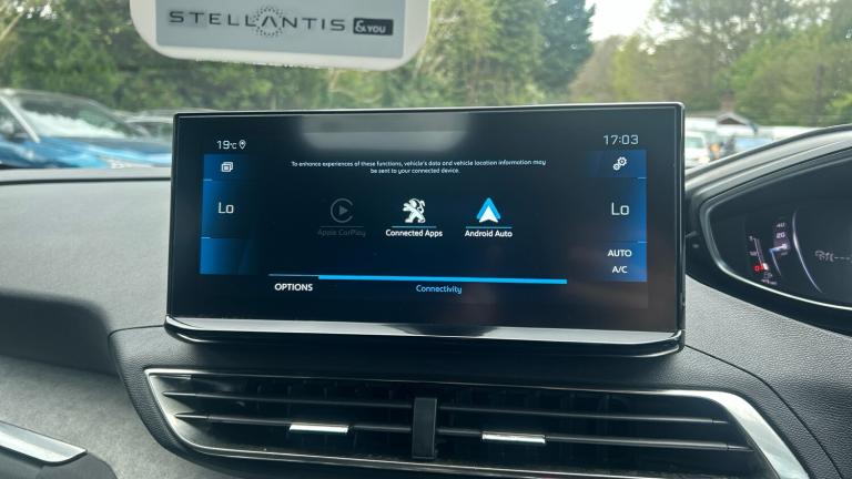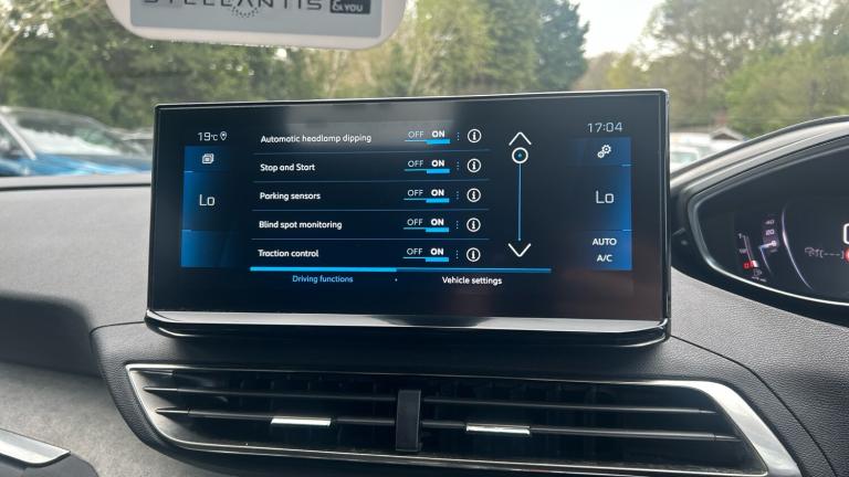 12V Sockets x3 - Front-Rear-Load Area3D Connected Navigation with Voice Recognition6-Speaker Radio - MP3 CompatibleBluetooth Telephone FacilityDAB - Digital Audio BroadcastingMirror Screen - Apple CarPlay and Android AutoPeugeot Connect SOS and AssistanceTwin USB Charging Sockets - Rear Centre ConsoleUSB Socket12.3in Configurable Head-Up Digital Instrument Panel - Located in PEUGEOT i-Cockpit180 Degree Colour Reversing Camera with Wash SystemBlue Ambient Lighting to Head-Up Instrument PanelDriving Time Warning - DAA1Extended Traffic Sign RecognitionExterior Temperature Indicator with Ice WarningFront Parking SensorsLane Departure Warning SystemMode SelectorMultifunction Trip ComputerRear Parking SensorsVoice Recognition - Radio-Navigation-Telephony Features18in Alloy Wheels - Detroit - Gloss Black - Diamond CutAluminium Longitudinal Roof BarsBody Protectors - Wheel Arches and Protection at Bottom of Doors - BlackChrome Rear Bumper FaciaDark Tinted Rear Side and Tailgate WindowsDoor Mirror Covers - Black DiamondDoor Mirrors - Electric Folding and HeatedExterior Door Handles - Body-ColourFront Bumper - Lower Trim in SilverFront Radiator Grille - Dynamic - Frameless DesignFront Wing Trim - Black with Chrome DetailGloss Black B and C Pillar and Aerodynamic Deflector TrimGloss Black Rear Cluster Connecting StripGT Emblems - Front Wings and TailgateHeated Rear Windscreen with Integrated AntennaLED Front IndicatorsLED Side Indicator Lights Integrated into Door MirrorsOne-Touch Electric Front and Rear Windows with Pinch ProtectionRear Spoiler - Body Colour with Stainless Steel Edging TrimRoof - Black DiamondSide Window Trim - ChromeStainless Steel Door Sill Scuff PlatesStainless Steel Roof Arch TrimTwin Exhaust Effect TrimTyre Repair and Inflation KitVisibility PackWindscreen Trim - Gloss BlackFull LED Headlights with Fog ModeHeadlights Left On Audible WarningLED Daytime Running Lights - Fang StyleRear LED Peugeot Signature Claw Effect Lights with Daylight Function and Scrolling LED Direction IndicatorsSelf Levelling Headlights1-3 - 2-3 Folding Rear Seat - Magic Flat Modularity with Controls Accessible From the BootAikinite Copper Contrast Stitching to ArmrestAir Conditioning - Automatic Dual Zone Climate ControlBlue Ambient Lighting for Connecting ZoneBlue Ambient Lighting to Front Door Panels and Central CupholdersCentral Front Armrest with Butterfly-Wing Opening and Illuminated CompartmentDashboard