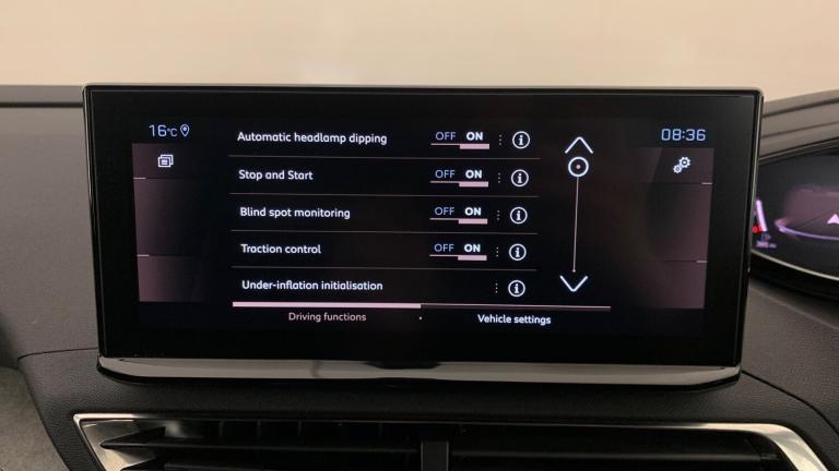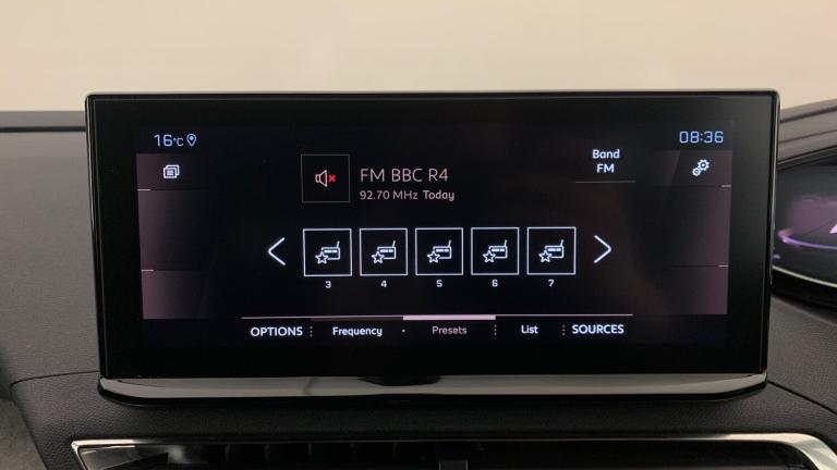 12V Sockets x3 - Front-Rear-Load Area3D Connected Navigation6-Speaker Radio - MP3 CompatibleBluetooth Telephone FacilityDAB - Digital Audio BroadcastingMirror Screen - Apple CarPlay and Android AutoTwin USB Charging Sockets - Rear Centre Console180 Degree Colour Reversing CameraBlue Ambient Lighting to Head-Up Instrument PanelDrive Mode Selection - Eco-Normal-SportExterior Temperature Indicator with Ice WarningFront Parking SensorsMultifunction Trip ComputerRear Parking SensorsVoice Recognition - Radio-Navigation-Telephony Features18in Alloy Wheels - Detroit - Gloss Onyx Black - Diamond CutAluminium Longitudinal Roof BarsBody Protectors - Wheel Arches and Protection at Bottom of Doors - BlackDark Tinted Rear Side and Tailgate WindowsDoor Mirror Covers - Black DiamondElectric - Heated and Power Folding Door Mirrors with Courtesy Floor LightingExterior Door Handles - Body-ColourFront Bumper - Lower Trim in SilverFront Radiator Grille - Dynamic - Frameless DesignFront Wing Trim - Black with Chrome DetailGloss Black B and C Pillar and Aerodynamic Deflector TrimGloss Black Rear Cluster Connecting StripGloss Black Windscreen TrimGT Emblems - Front Wings and TailgateHeated Rear Windscreen with Integrated AntennaLED Side Indicator Lights Integrated into Door MirrorsOne-Touch Electric Front and Rear Windows with Pinch ProtectionRear Number Plate Lights x2Roof - Black DiamondRoof and Rear Spoiler - Black DiamondSide Window Trim - ChromeStainless Steel Door Sill Scuff PlatesStainless Steel Roof Arch TrimTwin Exhaust Effect TrimTyre Repair and Inflation KitAutomatic Lights and WipersFollow Me Home HeadlightsFull LED Headlights with Fog ModeHeadlights Left On Audible WarningRear LED Peugeot Signature Claw Effect Lights with Daylight Function and Scrolling LED Direction IndicatorsSelf Levelling HeadlightsAir Conditioning - Automatic Dual Zone Climate ControlBlue Ambient Lighting for Central Connecting ZoneBlue Ambient Lighting to Front Door Panels and Central CupholdersCarpets - Mistral BlackCentral Front Armrest with Butterfly-Wing Opening and Illuminated Storage CompartmentDashboard Trim - Satin ChromeDigital Instrument Panel Trim - Satin ChromeFlocked Front Door Pocket Interior with Blue Ambient LightingFlocked Glove Box InteriorFloor Mats - Mistral Black with Aikinite Contrast StitchingFrameless Electrochrome Rear View Mirror - Auto DimmingFront Central Console with Two Cup-HoldersFront Door Panel Recess