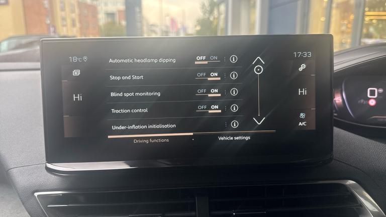 12V Sockets x3 - Front-Rear-Load Area3D Connected Navigation6-Speaker Radio - MP3 CompatibleBluetooth Telephone FacilityDAB - Digital Audio BroadcastingMirror Screen - Apple CarPlay and Android AutoTwin USB Charging Sockets - Rear Centre Console180 Degree Colour Reversing CameraBlue Ambient Lighting to Head-Up Instrument PanelDrive Mode Selection - Eco-Normal-SportExterior Temperature Indicator with Ice WarningFront Parking SensorsMultifunction Trip ComputerRear Parking SensorsVoice Recognition - Radio-Navigation-Telephony Features18in Alloy Wheels - Detroit - Gloss Onyx Black - Diamond CutAluminium Longitudinal Roof BarsBody Protectors - Wheel Arches and Protection at Bottom of Doors - BlackDark Tinted Rear Side and Tailgate WindowsDoor Mirror Covers - Black DiamondElectric - Heated and Power Folding Door Mirrors with Courtesy Floor LightingExterior Door Handles - Body-ColourFront Bumper - Lower Trim in SilverFront Radiator Grille - Dynamic - Frameless DesignFront Wing Trim - Black with Chrome DetailGloss Black B and C Pillar and Aerodynamic Deflector TrimGloss Black Rear Cluster Connecting StripGloss Black Windscreen TrimGT Emblems - Front Wings and TailgateHeated Rear Windscreen with Integrated AntennaLED Side Indicator Lights Integrated into Door MirrorsOne-Touch Electric Front and Rear Windows with Pinch ProtectionRear Number Plate Lights x2Roof - Black DiamondRoof and Rear Spoiler - Black DiamondSide Window Trim - ChromeStainless Steel Door Sill Scuff PlatesStainless Steel Roof Arch TrimTwin Exhaust Effect TrimTyre Repair and Inflation KitAutomatic Lights and WipersFollow Me Home HeadlightsFull LED Headlights with Fog ModeHeadlights Left On Audible WarningRear LED Peugeot Signature Claw Effect Lights with Daylight Function and Scrolling LED Direction IndicatorsSelf Levelling HeadlightsAir Conditioning - Automatic Dual Zone Climate ControlBlue Ambient Lighting for Central Connecting ZoneBlue Ambient Lighting to Front Door Panels and Central CupholdersCarpets - Mistral BlackCentral Front Armrest with Butterfly-Wing Opening and Illuminated Storage CompartmentDashboard Trim - Satin ChromeDigital Instrument Panel Trim - Satin ChromeFlocked Front Door Pocket Interior with Blue Ambient LightingFlocked Glove Box InteriorFloor Mats - Mistral Black with Aikinite Contrast StitchingFrameless Electrochrome Rear View Mirror - Auto DimmingFront Central Console with Two Cup-HoldersFront Door Panel Recess