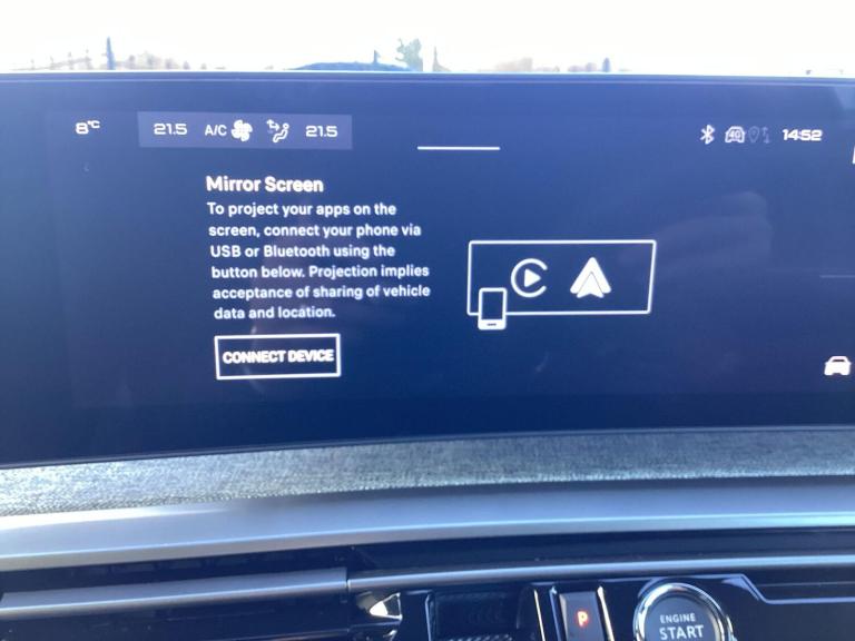 This 2025 Peugeot 5008 Allure is presented with exceptionally low mileage for its age, having covered just 10 miles, and benefits from a full service history with its last service completed on 27 January 2026 at only 2 miles. This Euro 6 compliant 1.2 litre petrol hybrid model offers seating for seven and comes with 12 months MOT provided on purchase, ensuring peace of mind.Experience seamless connectivity with Mirror Screen, featuring Apple CarPlay and Android Auto, alongside the advanced PEUGEOT i-Connect system with Bluetooth. Keep your devices powered up with the integrated Smartphone Wireless Charger, and enjoy personalised comfort thanks to the Tri-Zone Climate Control. The PEUGEOT Open and Go system with keyless entry adds further convenience. With an impressive fuel economy of 53 mpg, this 5008 Allure demonstrates superior efficiency compared to similar vehicles, making it an economical choice for families.