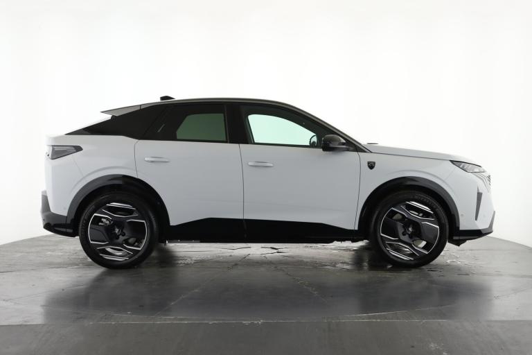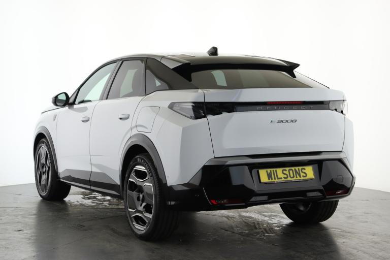 ..Adaptive cruise control with Stop and Go, Bluetooth with two microphones (Connect up to 2 phones), Drive modes select (Eco, normal and sport) with configurable ambient lighting, Driver foot rest, Driver profile selection, E-call, Exterior temperature indicator with ice warning, Front parking sensor, Front passenger seat detection, Hands free Smart Electric Tailgate (foot operated), Lane keep assist, Multi function trip computer, Natural voice recognition, PEUGEOT i-Cockpit - 21'' HD panoramic curved display incorporating instrument panel and touchscreen with 3colour themes, PEUGEOT i-connect advanced HD fully customisable touch screen, Navigation with Tom Tom Live updates and over the air map updates, PEUGEOT SOS and assistance, Rear parking sensor, Remote charge management via My PEUGEOT App, Speed limit and traffic sign recognition and recommendation, Wireless mirror screen with apple carplay and android auto, Wireless smartphone charger with status light and ambient lighting, 11 kW triphase Bi-directional on board charger, Dynamic stability control and electronic anti-skid system, Mode 3 type 2 cable for wallbox charging, Multi-link rear suspension, Vehicle-to-load (V2L) preparation, AM/FM bi-tuner, DAB Radio (Digital Audio Broadcasting), Peugeot customisable virtual iToggles, USB-C sockets (2 x front and 2 x rear), 3008 model designation badgers front and rear in basalt grey, Acoustic windscreen, Automatic hazard light activation upon heavy brake application, Automatic headlamp activation, Automatic windscreen wiper activation with interval wiping intensity control, Black diamond roof and floating effect rear spoiler finished in nera black metallic, Body coloured exterior door handles, Dark tinted privacy glass for rear door, Tailgate and Quarter windows, Door mirrors - Welcome lighting and integrated LED indicators, Electric adjustable/heated/folding door mirrors, Electrochrome rear view mirror, Flat blade wipers with magic wash integrated nozzles, Front and rear electric windows with one touch, Front grille with body coloured accents, Gloss black connecting strip between rear lights, Gloss black finish B pillar, Heated rear window, Laminated windscreen, LED daytime running lights, LED exterior lighting, LED third brake light, Lower front and rear bumper trims in meteor grey, Orbital gloss black door mirrors, Orbital gloss black lower door claddings and widened wheel arches, PEUGEOT shield on front wings, Pixel LED Technology headlights with