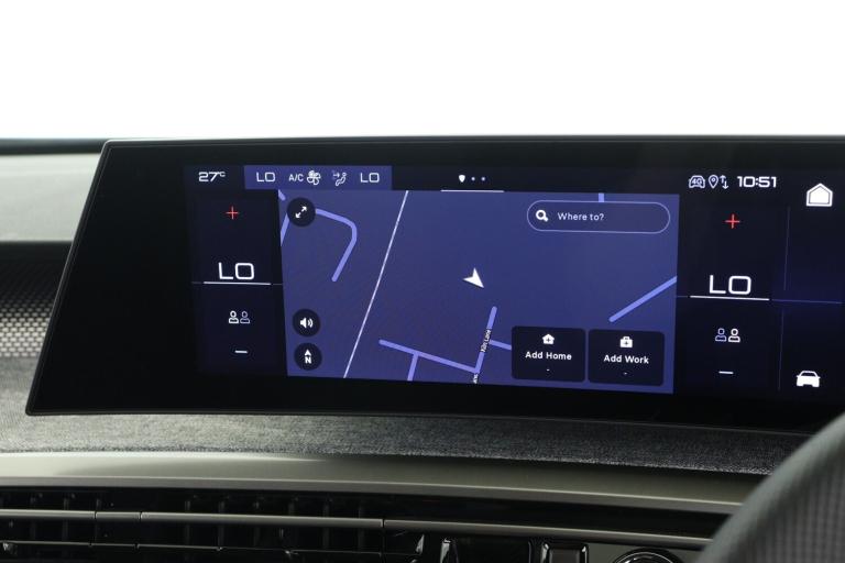 ..Adaptive cruise control with Stop and Go, Bluetooth with two microphones (Connect up to 2 phones), Drive modes select (Eco, normal and sport) with configurable ambient lighting, Driver foot rest, Driver profile selection, E-call, Exterior temperature indicator with ice warning, Front parking sensor, Front passenger seat detection, Hands free Smart Electric Tailgate (foot operated), Lane keep assist, Multi function trip computer, Natural voice recognition, PEUGEOT i-Cockpit - 21'' HD panoramic curved display incorporating instrument panel and touchscreen with 3colour themes, PEUGEOT i-connect advanced HD fully customisable touch screen, Navigation with Tom Tom Live updates and over the air map updates, PEUGEOT SOS and assistance, Rear parking sensor, Remote charge management via My PEUGEOT App, Speed limit and traffic sign recognition and recommendation, Wireless mirror screen with apple carplay and android auto, Wireless smartphone charger with status light and ambient lighting, 11 kW triphase Bi-directional on board charger, Dynamic stability control and electronic anti-skid system, Mode 3 type 2 cable for wallbox charging, Multi-link rear suspension, Vehicle-to-load (V2L) preparation, AM/FM bi-tuner, DAB Radio (Digital Audio Broadcasting), Peugeot customisable virtual iToggles, USB-C sockets (2 x front and 2 x rear), 3008 model designation badgers front and rear in basalt grey, Acoustic windscreen, Automatic hazard light activation upon heavy brake application, Automatic headlamp activation, Automatic windscreen wiper activation with interval wiping intensity control, Black diamond roof and floating effect rear spoiler finished in nera black metallic, Body coloured exterior door handles, Dark tinted privacy glass for rear door, Tailgate and Quarter windows, Door mirrors - Welcome lighting and integrated LED indicators, Electric adjustable/heated/folding door mirrors, Electrochrome rear view mirror, Flat blade wipers with magic wash integrated nozzles, Front and rear electric windows with one touch, Front grille with body coloured accents, Gloss black connecting strip between rear lights, Gloss black finish B pillar, Heated rear window, Laminated windscreen, LED daytime running lights, LED exterior lighting, LED third brake light, Lower front and rear bumper trims in meteor grey, Orbital gloss black door mirrors, Orbital gloss black lower door claddings and widened wheel arches, PEUGEOT shield on front wings, Pixel LED Technology headlights with