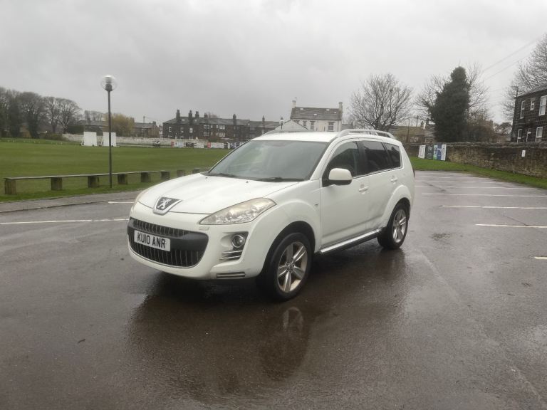For sale Peugeot 4007 gt 2.2 diesel automatic 4x4 7 seater in white good condition inside and out done 160k full service history top spec as electric windows all round remote central locking cd player bulit in sat nav and screen reverse camera parking sensors selectable 4x4 wheel drive full black leather heated interior steering wheel controls cruise control flapper panels zedon lights electric folding mirrors alloy wheels factory tinted windows runs drive good odd mark nowt bad few months mot hpi clear 2 keys full v5 NO OFFERS OR LAST PRICE CASH ONLY THANKS