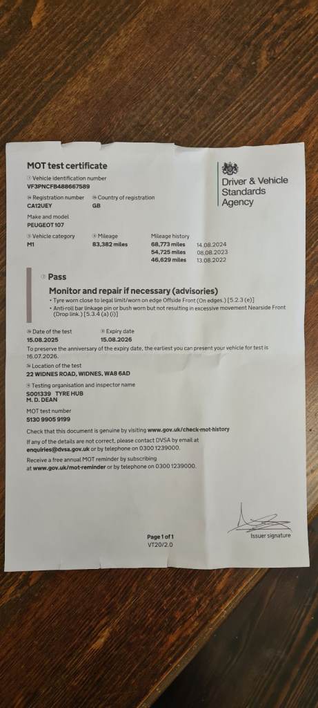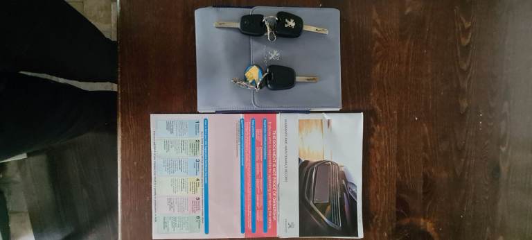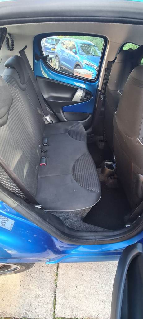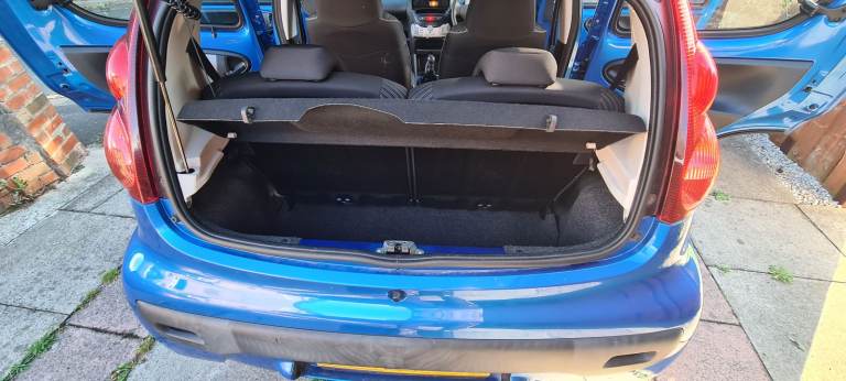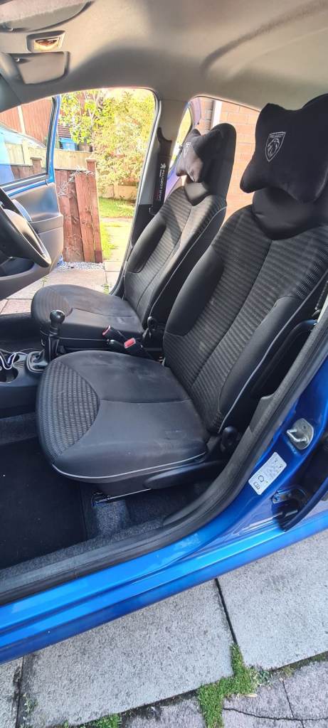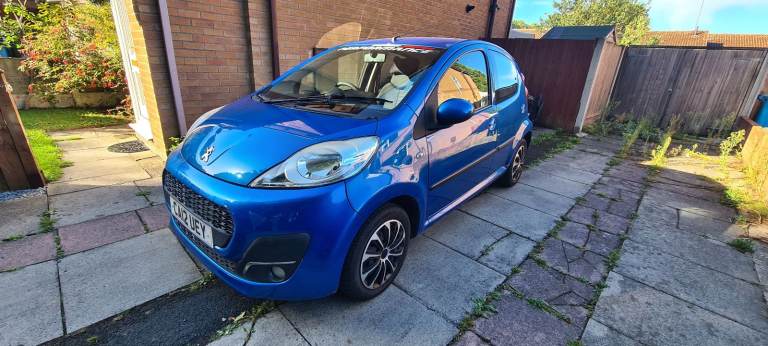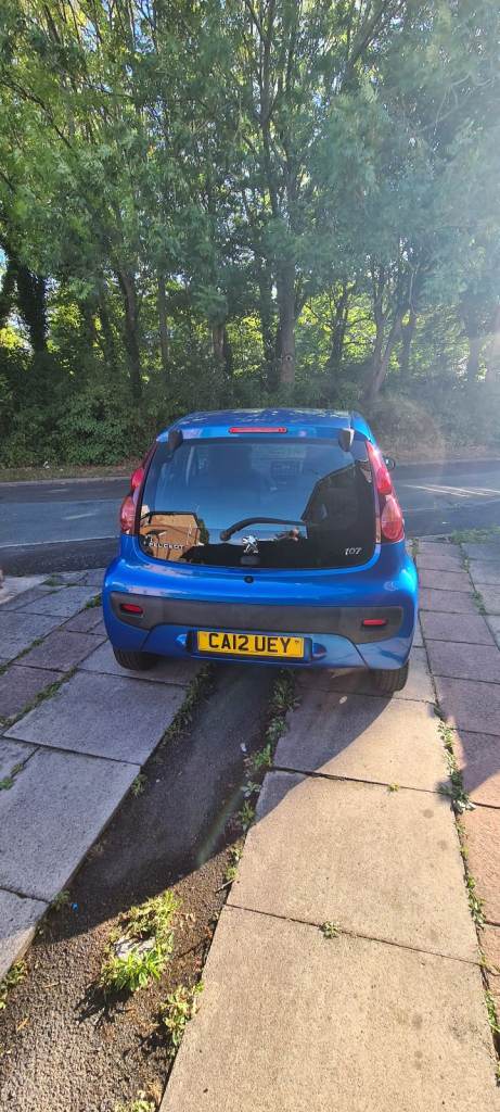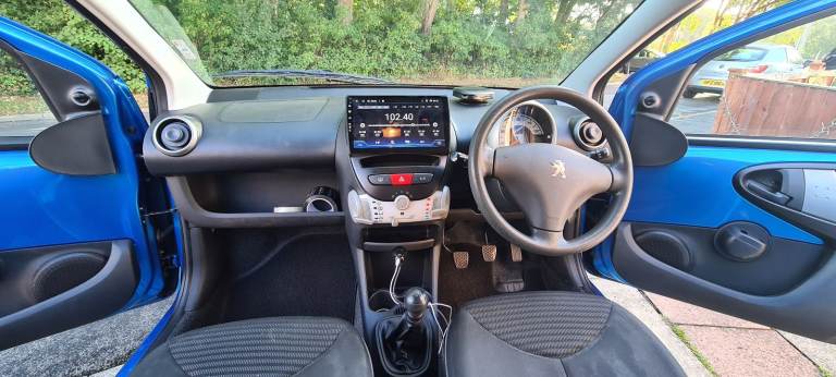 Blue Peugeot 107(2012) 1.0, Petrol, 3 cylinder, 67 hp, 5 speed manual, (cam chain Toyota engine, so no cam belt to change) showing 83.4k miles, full service history, (just been serviced), MOT until 08/2026, power steering, 4 x good tyres, electric front windows, remote central locking, heated rear window with rear headrests, carpet floor mats, front and rear, parcel shelf, spacesaver spare wheel, electric headlight level adjust.
