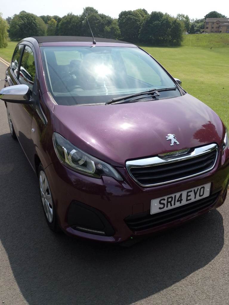 Peugeot 108 Top! 5 Door Hatchback 1.0 VTi 68 EU5 Active in purple. Spares and repairs due to a water leak into the boot towards the rear of the car. In great condition inside and out. Very economical and Ulez compliant. Features include full length electric convertible roof, air conditioning, electric front windows, blue tooth telephone system, colour display screen with hifi radio, steering wheel controls for phone and radio.5 speed manual gearbox. Recorded as category S. Available for viewing or test drive in G32 area of Glasgow. Please phone for further information or to arrange a viewing.