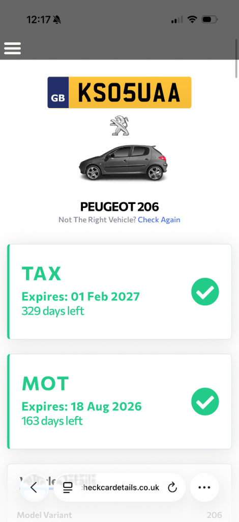 This vehicle has not been reported stolen, scrapped, exported or flagged as unroadworthy.