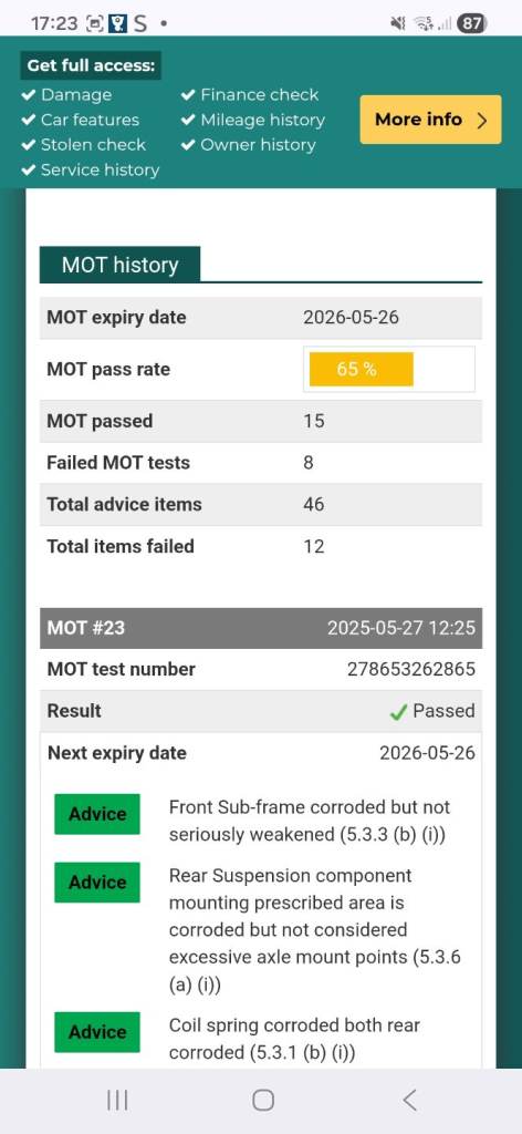 Buy the full report for guaranteed data accuracy, outstanding finance, valuation, milage check & VIN match for £9.99 (normally £19.99)