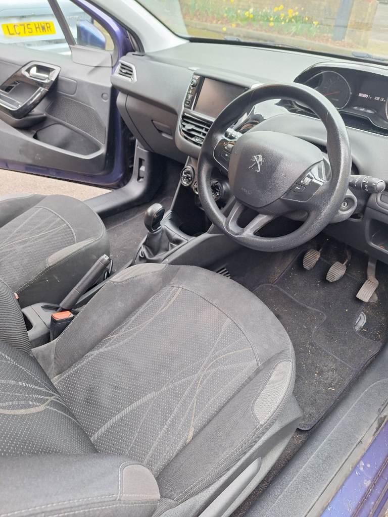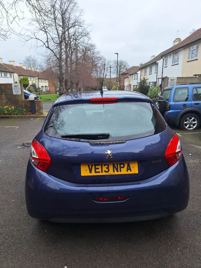 Blue 2013 Peugeot 208, 2 door, 1.2 engine, 83k on mileage, 5 speed manual gearbox, 2 keys, full v5, part service history with 6 stamps in book, mot till Nov 26, electric windows, alarm central locking, power steering, cruise control, airbags, air con, auto wipers and headlights, bluetooth stereo with aux and usb.