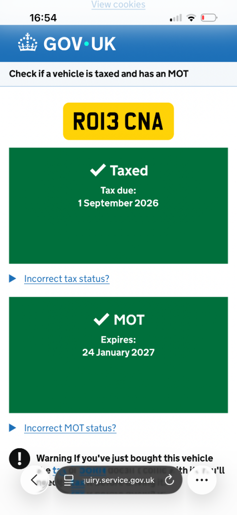 This vehicle has not been reported stolen, scrapped, exported or flagged as unroadworthy.