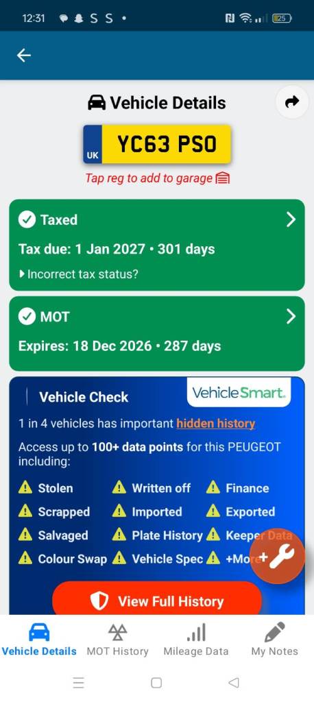 Buy the full report for guaranteed data accuracy, outstanding finance, valuation, milage check & VIN match for £9.99 (normally £19.99)