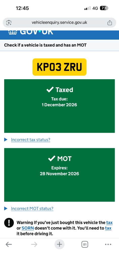 This vehicle has not been reported stolen, scrapped, exported or flagged as unroadworthy.