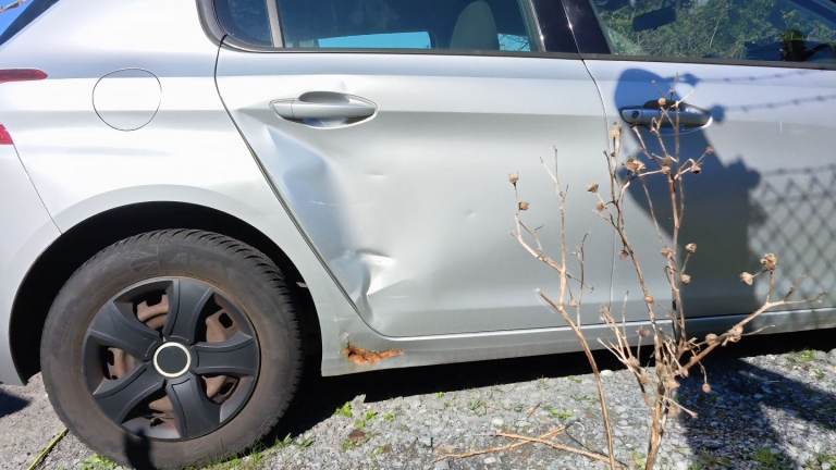 The rear right door is dented, but it’s only a cosmetic issue. There are no water leaks, and the window can be lowered all the way.