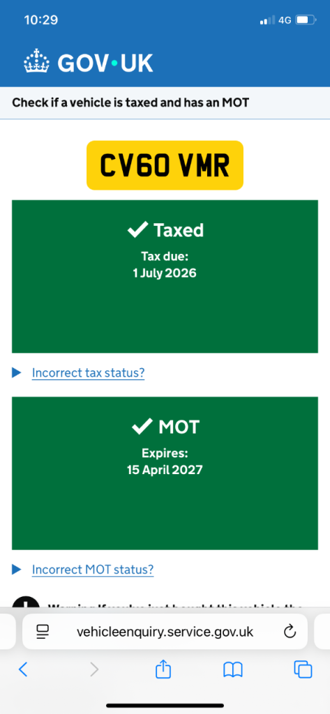 This vehicle has not been reported stolen, scrapped, exported or flagged as unroadworthy.