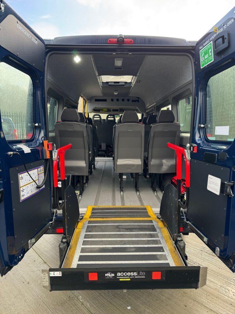 Peugeot Boxer 2.0HDi 130 6 speed manual, L4 H2, 19 Reg, finished in Blue. This Minibus Lite Spec 5 features 17 seats with integral all-age seat belts, 13 removable seats create space for 4 wheelchair passengers, underfloor passenger lift, overhead locker, durable flooring, fully carpeted interior, no D1 licence required (drive it on a car licence). This minibus will come with a brand new MOT, fully serviced, 6 months RAC Warranty and 12 months Roadside Assistance, fully valeted. Prices show excludes VAT which will be added at the prevailing rate.