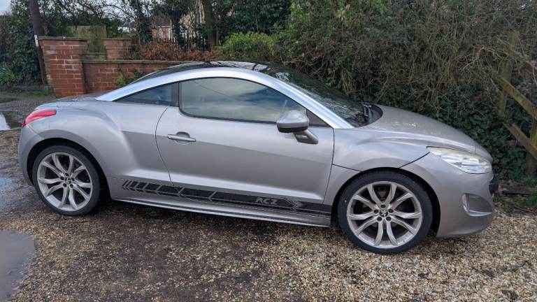 The Peugeot RCZ 2012 is a stylish coupe with a sleek grey exterior and a sporty 1.6 litre petrol engine.