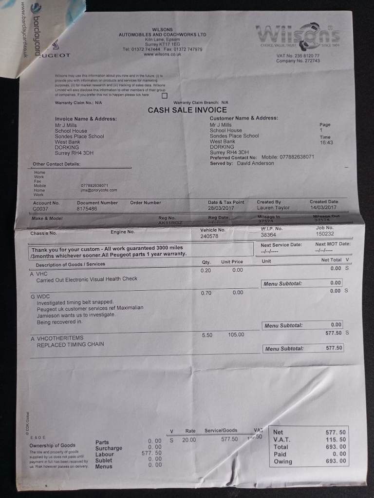 π’ Timing chain been changed at 37000 miles by Peugeot dealer