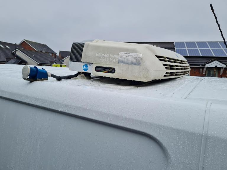 This Vechicle Is Fitted With This Unit.The Thermo King V-200 MAX Spectrum is a versatile, vehicle-powered multi-temperature refrigeration unit designed for small-to-medium vans and trucks (up to 12 \(m^{3}\)) needing independent, simultaneous transport of fresh, frozen, or deep-frozen goods. It features flexible, dual-compartment configuration options with superior, independent cooling capacities. Key Features & Specifications Capacity: Engineered for multi-temp applications using the ES100+ES100 evaporator configuration.Performance: Delivers a maximum refrigeration capacity (on engine power at \(-20^{\circ }C\)) of 1750 W.Standby: Equipped with electrical standby for operational flexibility (1170 W at \(-20^{\circ }C\) on stand-by).System Controls: Utilizes the Direct Smart Reefer (DSR) in-cab controller for precise, user-friendly, independent control of each compartment.Airflow: Approximately 1172 \(m^{3}\)/hr, with ES100+ES100 configurations providing 695 [Website URL removed] Designed for high-flexibility, allowing for both transversal and longitudinal split configurations. Advantages Multi-Temp Flexibility: Allows independent on/off and set-point adjustments for multiple zones.Independent Operation: Improved door switch functionality enables independent evaporator control.Reliability: Shared components with the V-series platform ensure high reliability and easy maintenance.