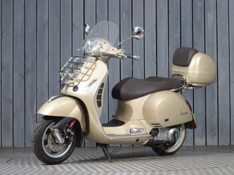 This 2018 BEIGE PIAGGIO VESPA GTS 300 motorbike has done 2195 miles and is in superb condition. It's available for collection from our DONINGTON showroom or can be delivered anywhere on the UK Mainland. This bike has 4 previous owners, comes with 2 Keys, a PART SERVICE HISTORY, and last serviced at 2,144 miles.