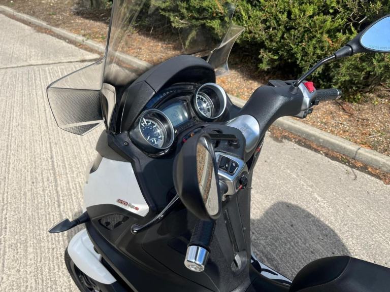 White Piaggio Mp3 300, year 2019 (19 reg.), 27,956 miles. MOT included in the price. PLEASE VISIT OUR WEBSITE DIRECTLY FOR THE FULL RANGE OF UP-TO-DATE STOCK WHICH MAY NOT BE ON OTHER PLATFORMS. VIEWING STRICTLY BY APPOINTMENT ONLY. Visit [Website URL removed] call 01759 591666 or email [Email address removed. Click Email button to contact us.] for more details.