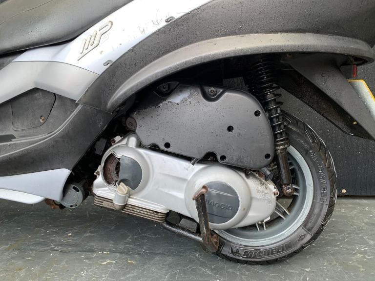 Here we have for sale a Piaggio MP3 125 as a project scooter in overall poor condition. We have not had this bike running, the ignition barrel has been bypassed. When applying a jump pack, nothing happens. The mileage is unknown, the last MOT states it had done 29182 miles. Both tyres are very good, the electrics are untested. The MOT expired 09/03/2021. We have the V5 for this bike.