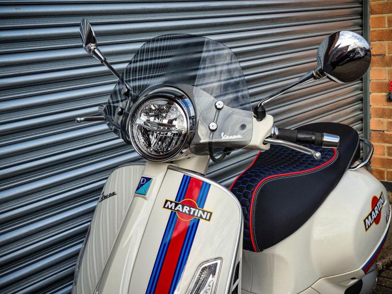 MSC are pleased to present this 2022 Vespa GTS 300 Super in white with Martini graphics.