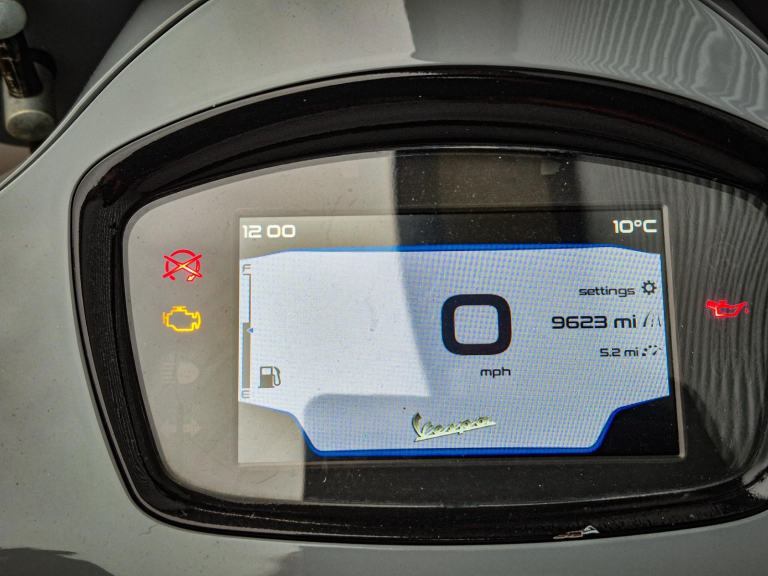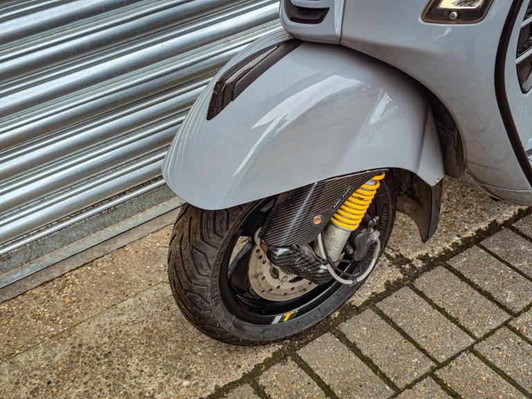 This 2019 bike has covered 9623 miles from new and comes with flyscreen, Vespa style grips, carbon extras including fender extender, LED rear lights & indicators, custom seat & Odyssey exhaust.
