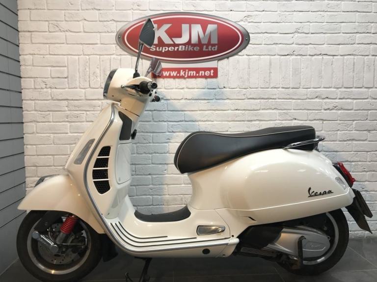 PIAGGIO VESPA GTS SUPER 300 HPE, 2019/19, 7878 MILES IN WHITE - BIANCO INNOCENZA. Stylish scooter with the benefit of heated grips, owners book, both keys and showing service done at 516, 3414, 6017 and 6736 miles, the next service will be done at KJM for the new owner. If you want something with a sytle of its own this is not to be missed, in stock at KJM now and ready to view, WhatsApp video available on request.
