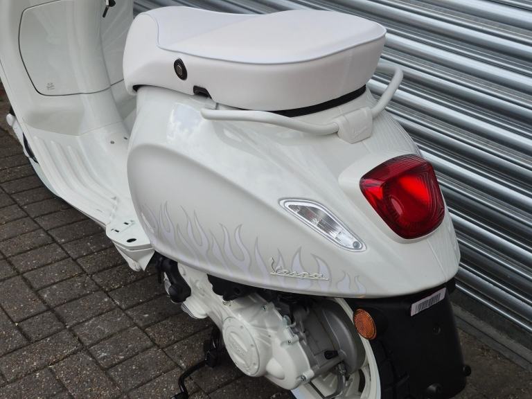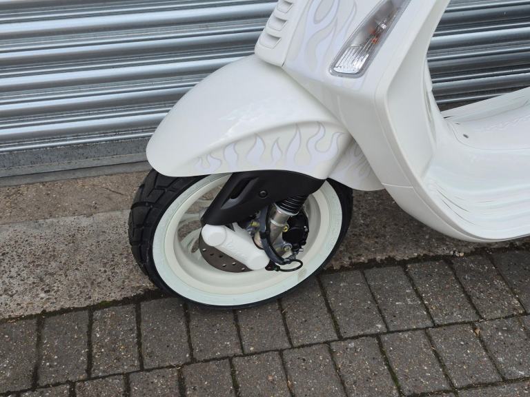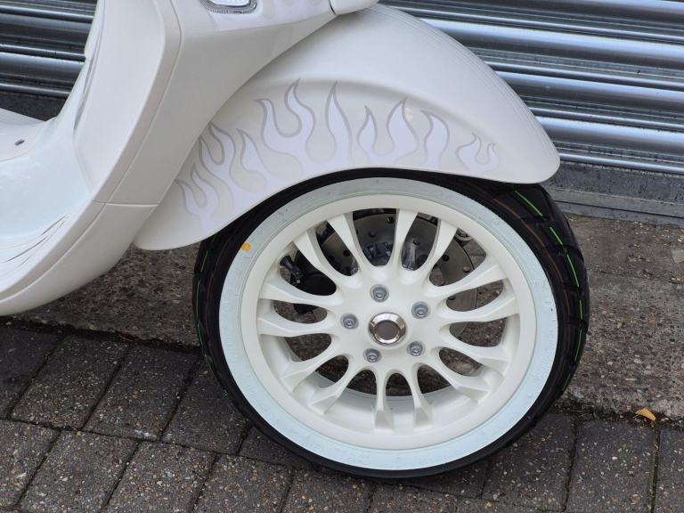 The bike also features White Seat, Grips, Leg shield Bead, Floor Board Rubbers, Headlamp surround, and Exhaust heatshield finished off with a pair of white wall tyres.