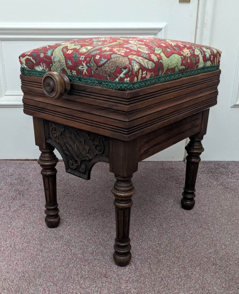 Antique Victorian Adjustable Piano Stool by H. Brooks and Co.