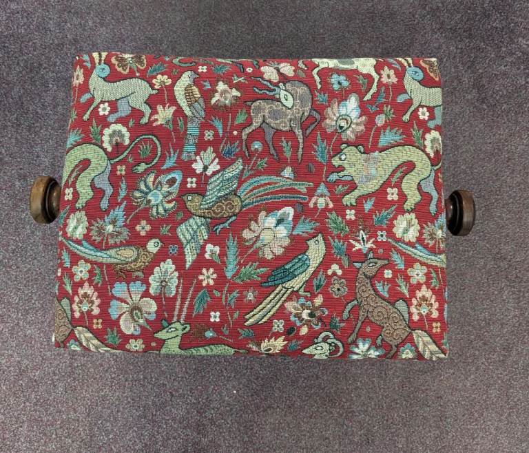 Beautiful Victorian adjustable piano stool by famous maker Henry Brooks and Co. Newly reupholstered in quality tapestry fabric. Great condition for age.