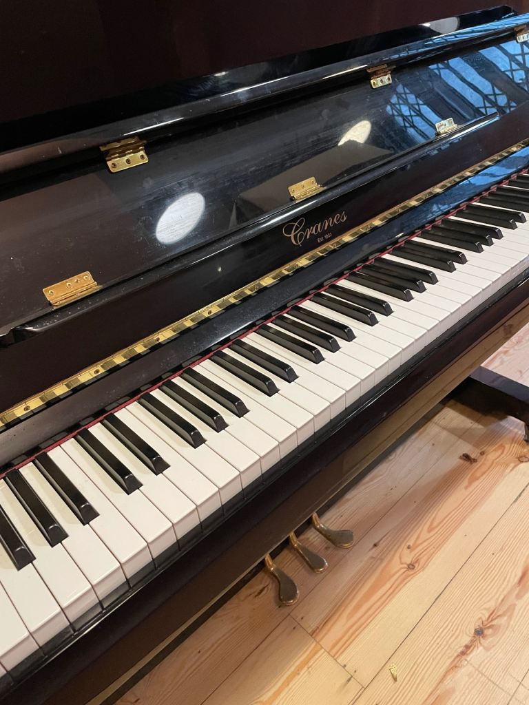 Cranes upright, in Black , 52, keys lovely condition , Quality unit plays well h44insxw24wxL60ins , floor pedals
