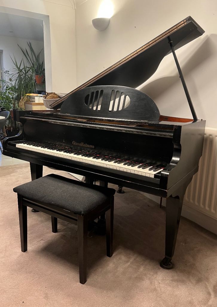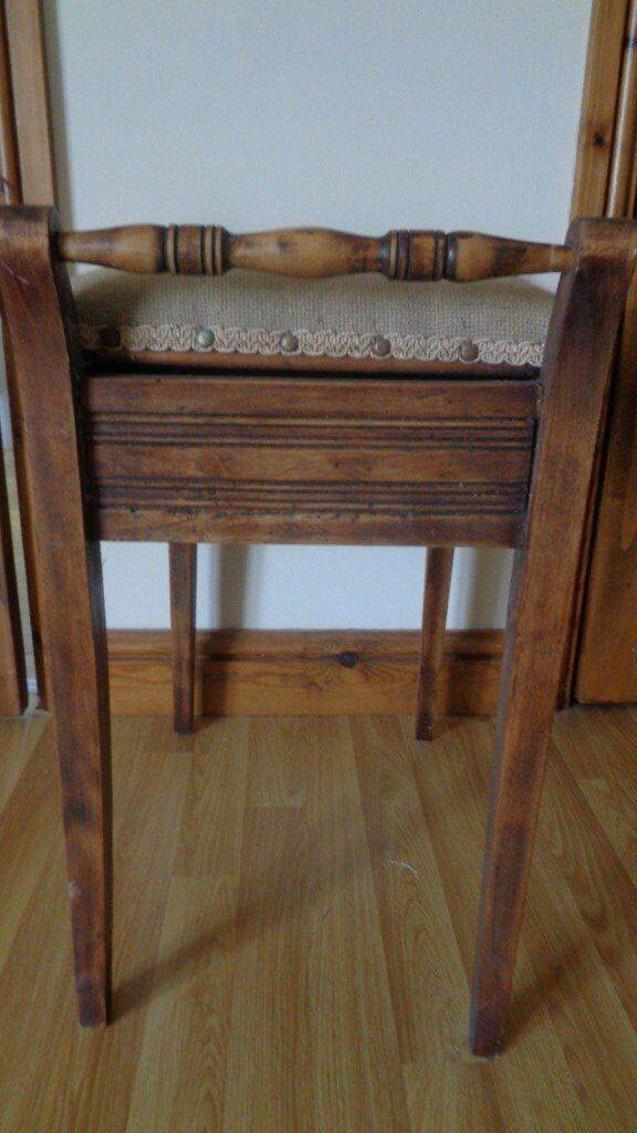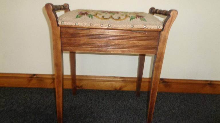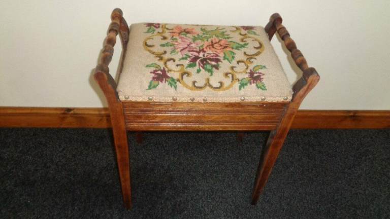 PIANO STOOL WITH STORAGE TAPESTRY SEAT VINTAGE wood