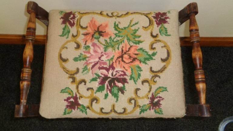 Embroided Floral Antique Piano Stool With Storage - Embroided with floral pattern. Antique piano stool with storage for music books.