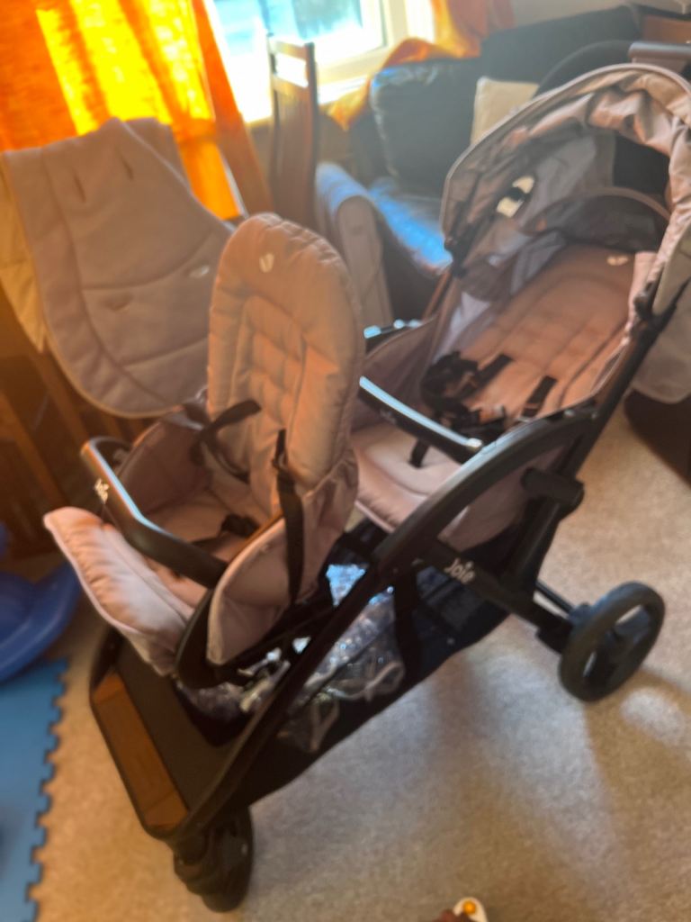 The seat material is corduroy and is slightly discoloured.