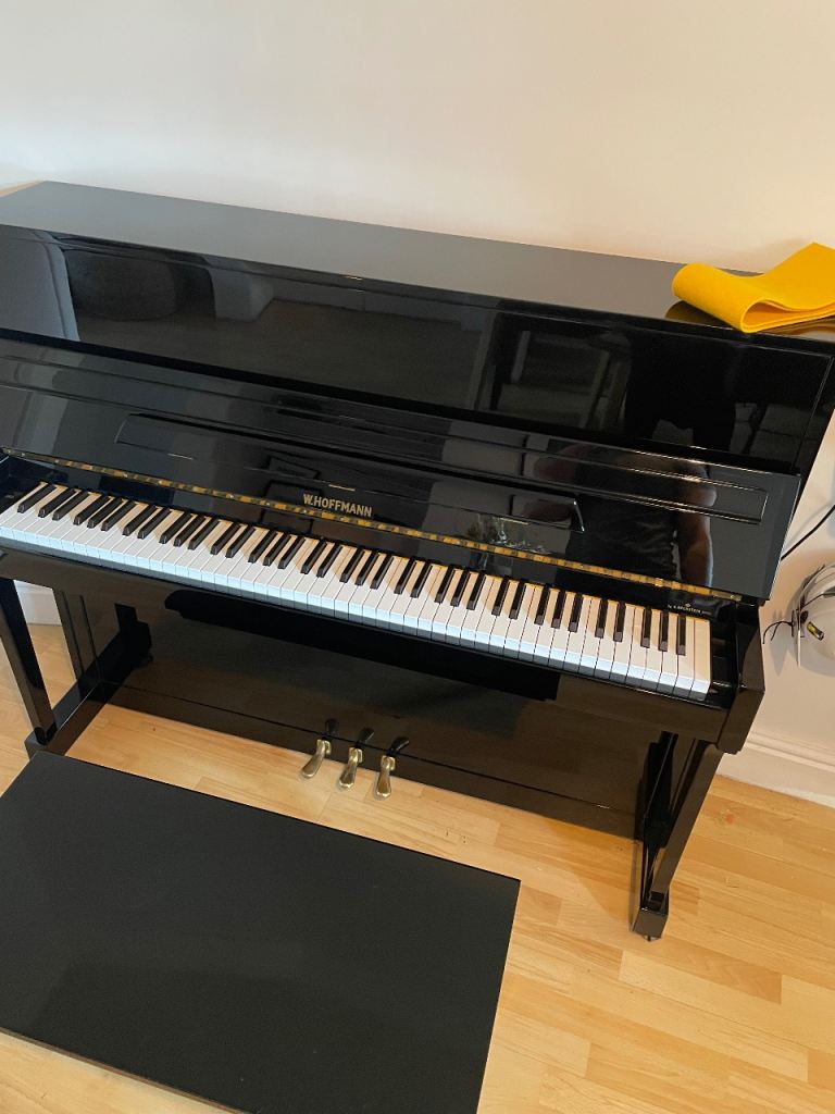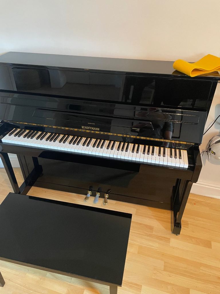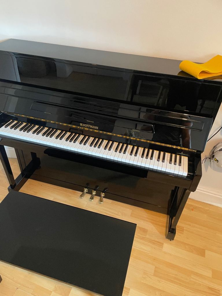 W Hoffman piano, tuned every 6 months from Forsyth Manchester . The Hoffman 120 made in Europe by Bechstein has great Bechstein hammers, three pedals with very good mute pedal. Black gloss. Kept in humidity free home. Retail around 13000 new.