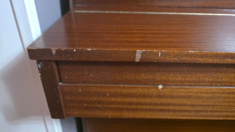 Piano needs tuning but still plays very well. All the keys are in very good condition. There is slight scratching on the front left panel and an approx. 5cm mark on the top as shown in photos. Piano stool opens to allow for storage. COLLECTION ONLY.