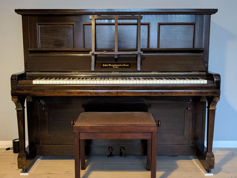 John Broadwood and Sons Upright Piano, including stool. We’ve had it since about 1999 and Google says it’s circa 1908 but I don't know if that is accurate.
