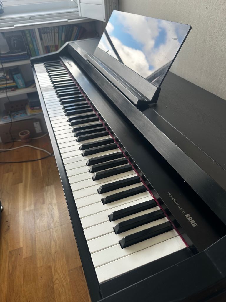 Korg Concert 3500 is a solid, 88-key weighted digital piano from the late 1980s/early 1990s, known for its realistic acoustic piano feel and built-in speakers, offering a professional, classic digital piano experience with MIDI/audio I/O and basic voices like piano, harpsichord, and vibes.