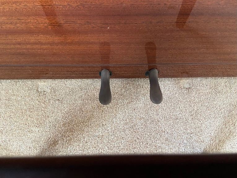 This piano is under-damped. Underdamped pianos have the dampers positioned below the hammers, making the damping action more efficient and resulting in a cleaner, clearer sound when a note is released.