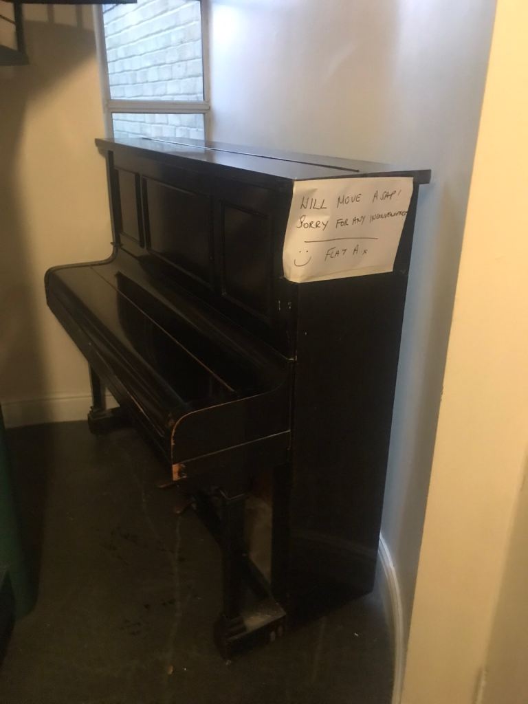 A few scuffs but would be a nice idea to paint it and have it as a nice feature in the home. Or will need a simple retune for regular playing.