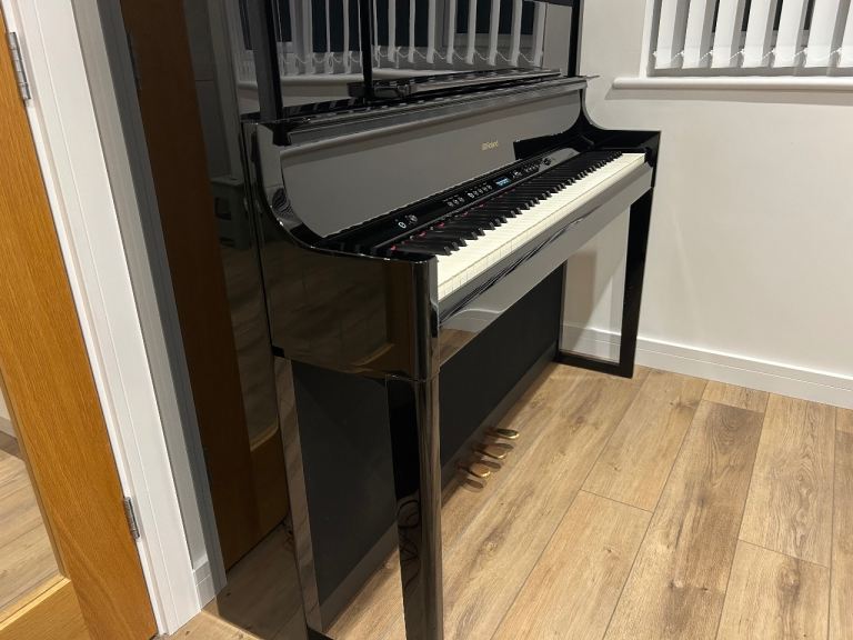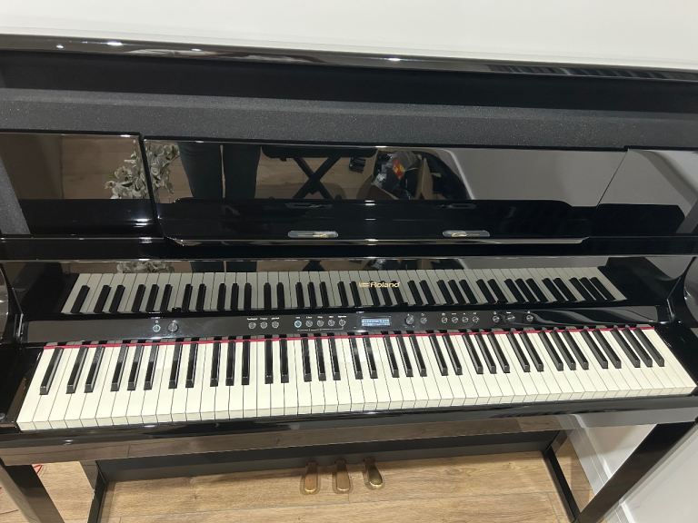 This is the Roland LX708 Digital upright piano. It is used but in great condition and has been kept very well. It has been kept in warm dry conditions and has been very well looked after making sure that it is the best playing experience for any pianist beginner or professional. The keys are wooden and have beautiful hammer action making it feel super responsive and authentic.