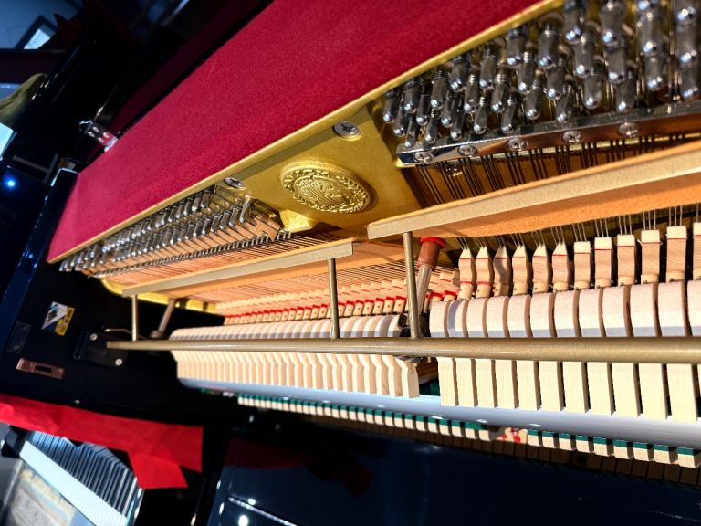Lovely rich tone, with good strong bass and sparklingly clear treble, and a very good dynamic range. Has just been tuned to concert pitch (A=440). This piano features a 3rd pedal for very quiet practice.