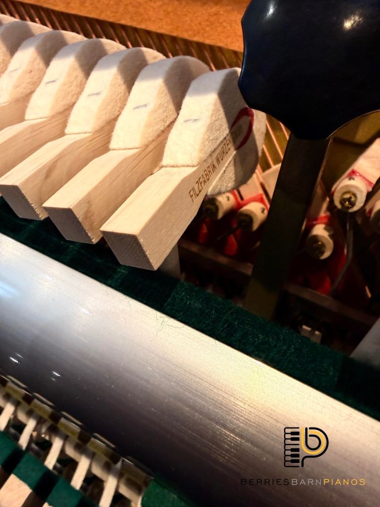 As visible on the photos there is hardly any wear at all in the hammers (top quality German made) and the strings (also German) are in virtually as new condition also.