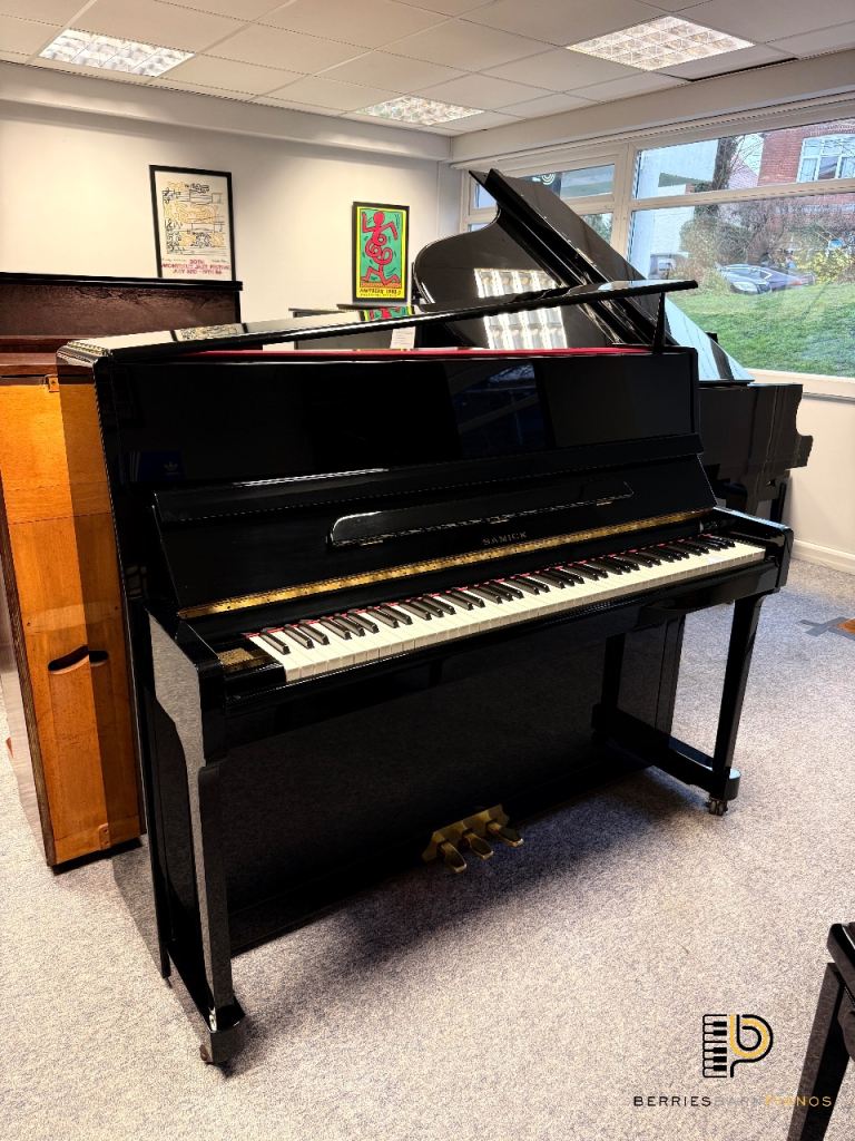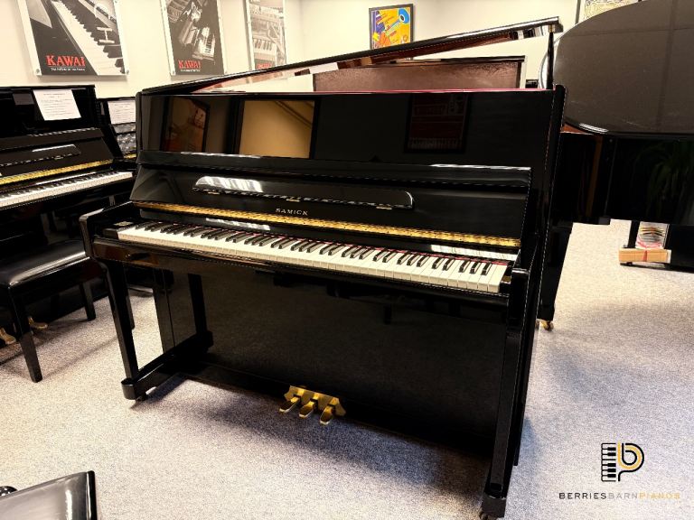 Samick JS-118 Modern Upright Piano in Ebony Polish (Black Gloss) - Inc Delivery, Stool, Wty
