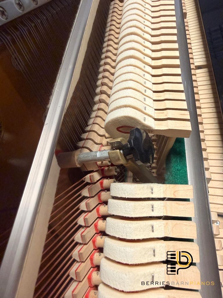 As visible on the photos there is hardly any wear at all in the hammers (top quality German felts) and the strings (also German) are in virtually as new condition also.