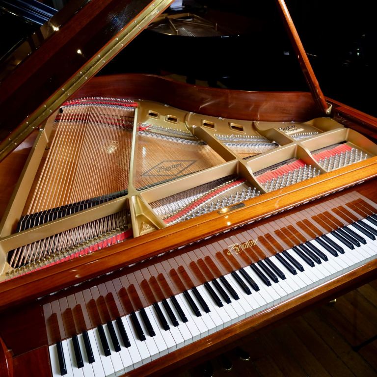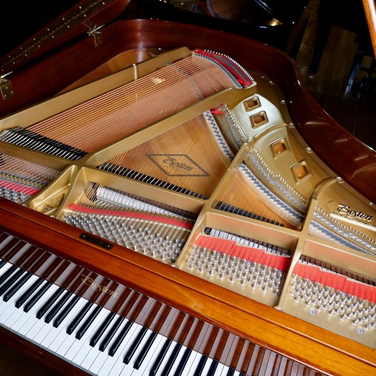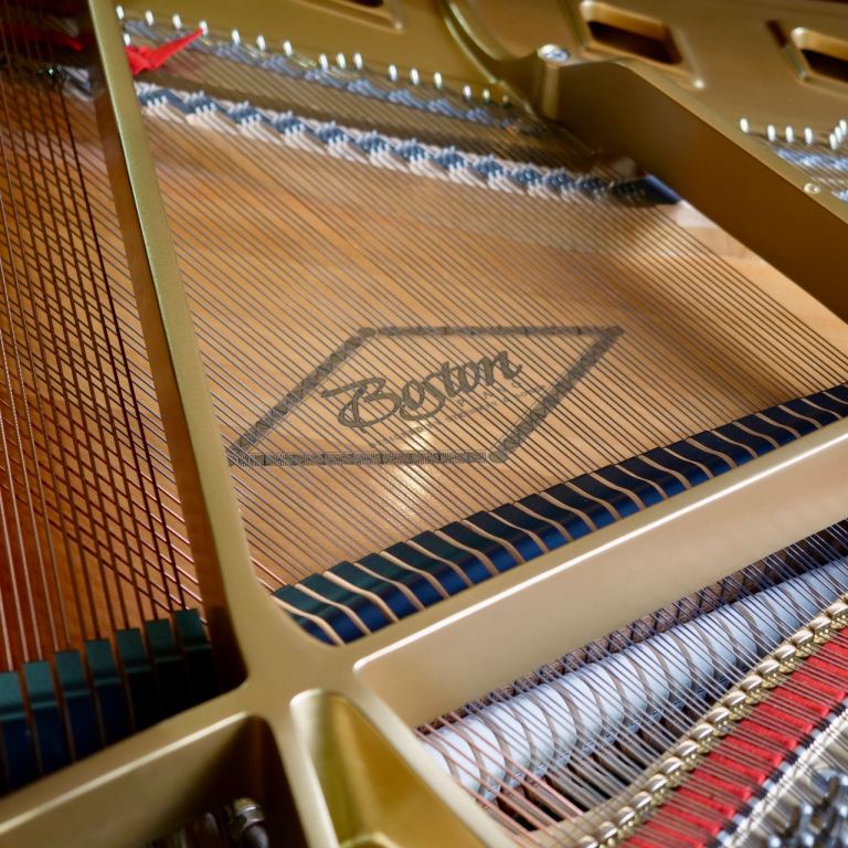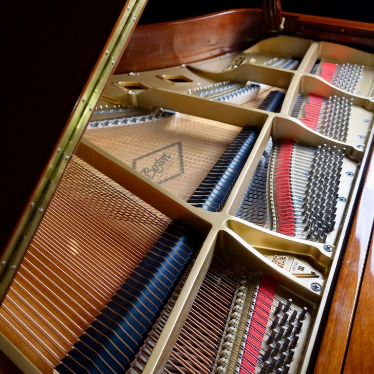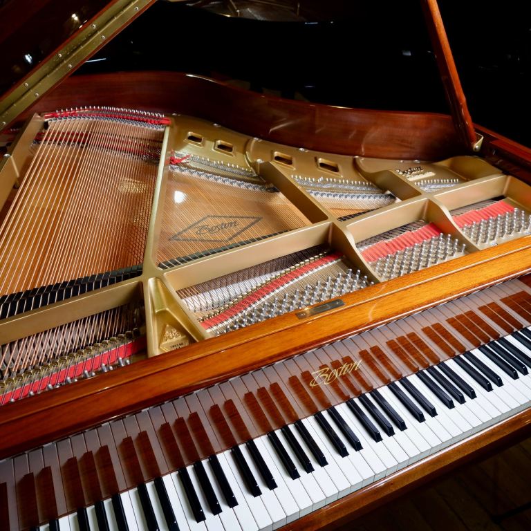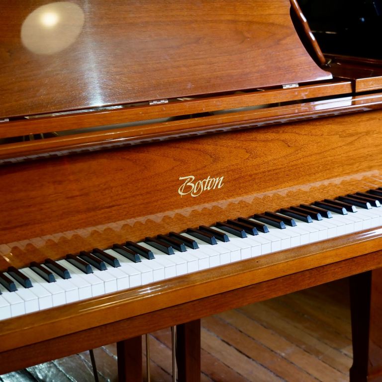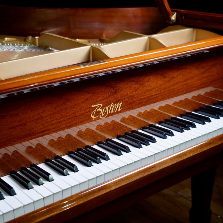 This is our Boston GP163 Baby Grand Piano, designed by Steinway & Sons, in Walnut Polyester case. Originally this piano was made in 2006 in Japan and had only one careful owner from new who took a great care of the piano. The piano has 88 keys, 3 pedals and it has a balanced medium action with its medium tone, action feels very responsive and hammers do not have much wear on them. It is a great option for beginner and professional musicians, suitable for Grade 1-8 and beyond.