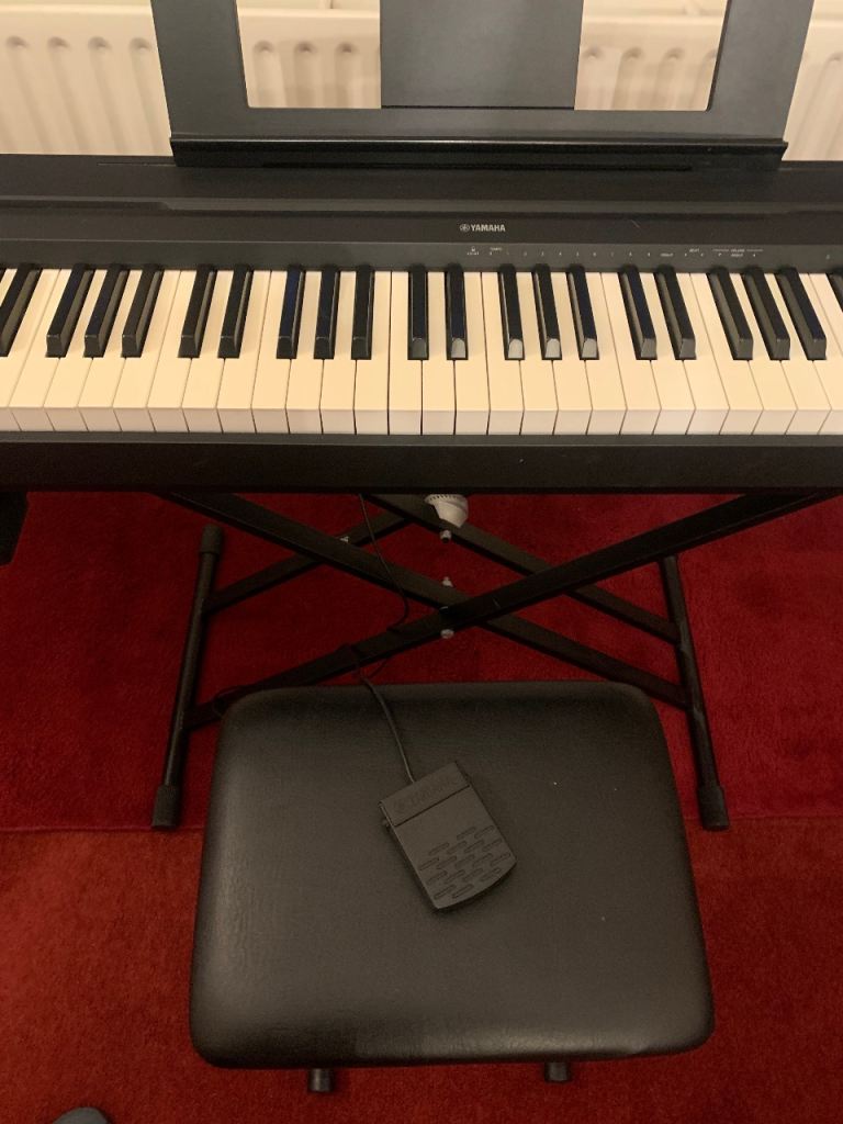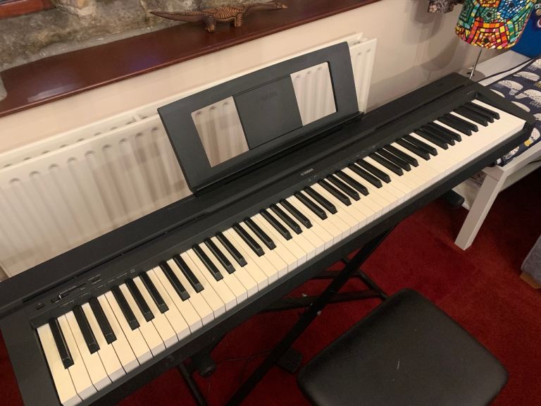 Posting for 11+ yearsYamaha P-45 weighted keys electric piano, stand and stool