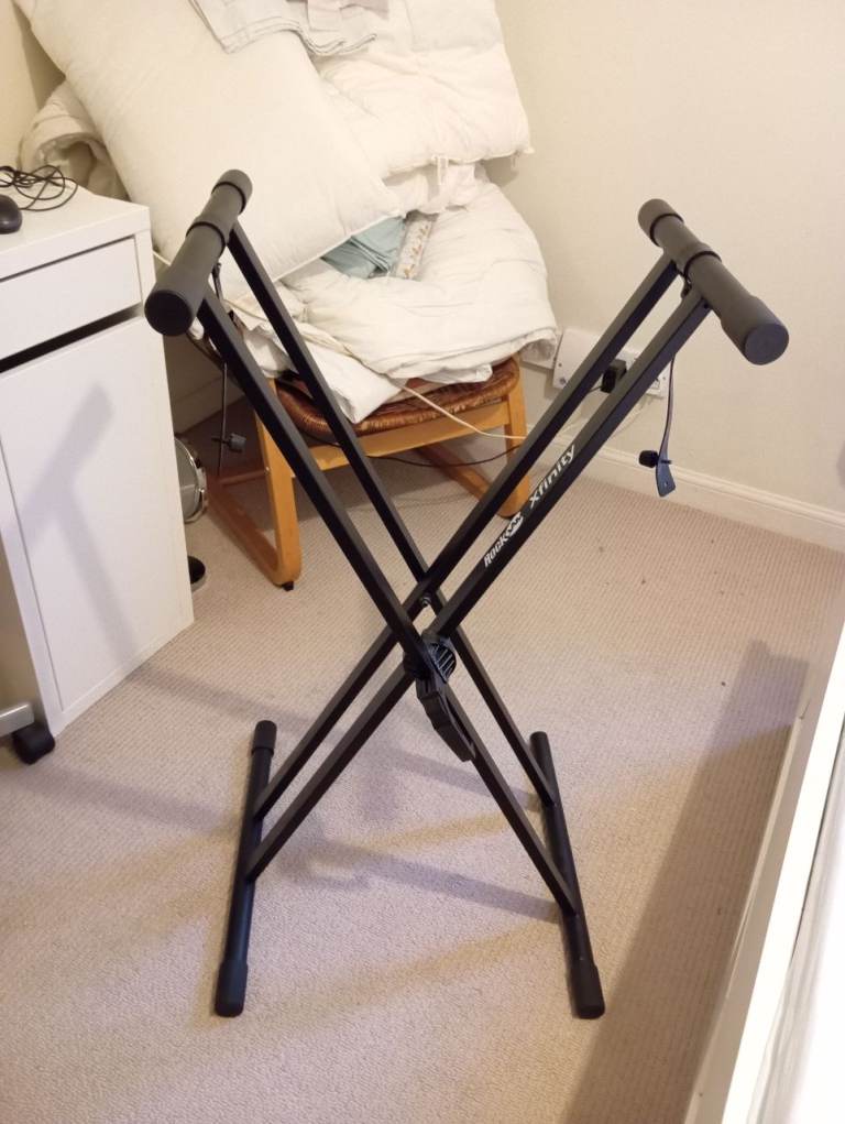 Please note: the keyboard stand is missing a small rubber cap on one of the legs. This does not affect stability or use, and the stand works perfectly.